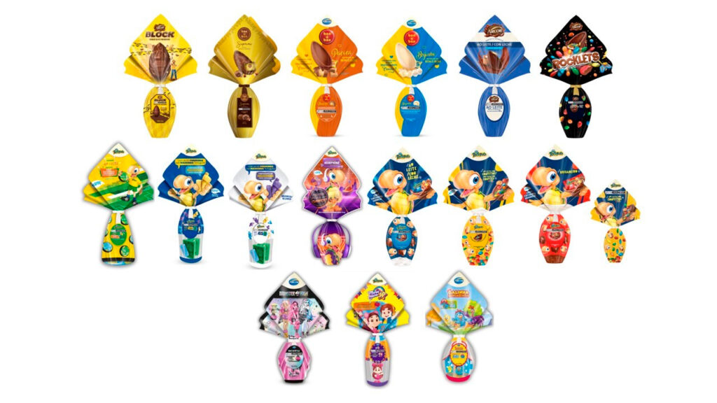 No segmento de licenças, a Arcor amplia parcerias com nomes conhecidos do público infantil. Entre as novidades estão ovos da Galinha Pintadinha, Maria Clara & JP e Monster High, todos com brindes colecionáveis. A linha ainda inclui produtos como o ovo Dragões, com jogo digital, e o ovo Unicórnio, que permanece no portfólio com proposta lúdica.
