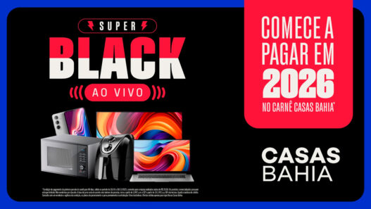 A Casas Bahia amplia sua maior campanha da história, a Super Black Ao Vivo, com a ação interativa “Batalha de Ofertas”, que une entretenimento, redes sociais e descontos exclusivos. A iniciativa convida o público a votar nas redes da marca e decidir quais produtos terão seus preços desbloqueados ao longo das semanas.