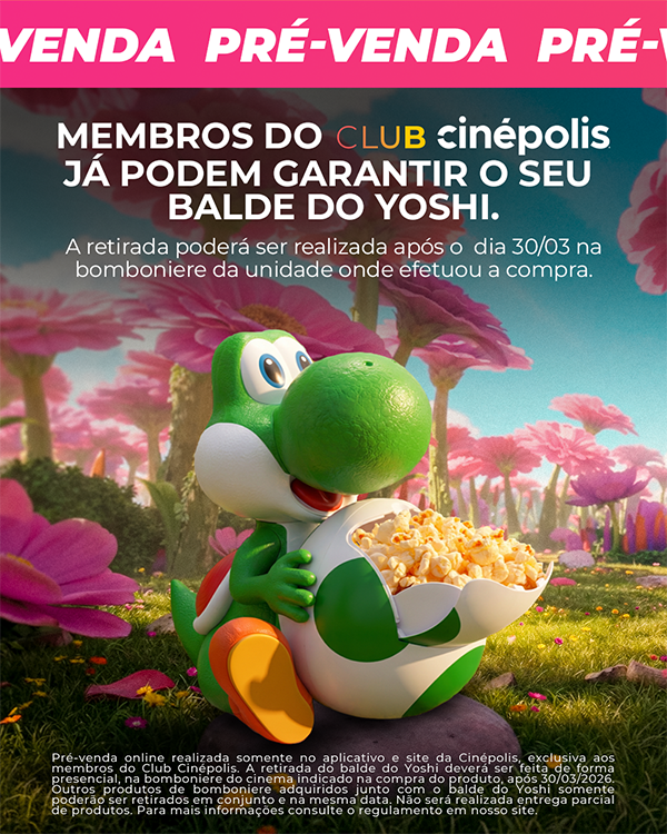 A rede de cinemas Cinépolis anunciou a abertura da venda antecipada de um novo colecionável inspirado em Super Mario Galaxy: O Filme. Membros do Club Cinépolis já podem garantir pelo aplicativo ou site da rede o balde temático do personagem Yoshi, com cadastro gratuito disponível na plataforma.