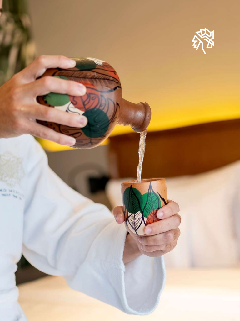 Mais do que um toque estético, a moringa representa o compromisso do hotel com a sustentabilidade e o estilo de vida consciente. O item substitui as tradicionais garrafas plásticas de água, tornando-se uma opção plastic free que resgata memórias afetivas e a tradição das casas brasileiras antigamente, em que a água fresca sempre esperava por nós, guardada na moringa sobre a mesa.