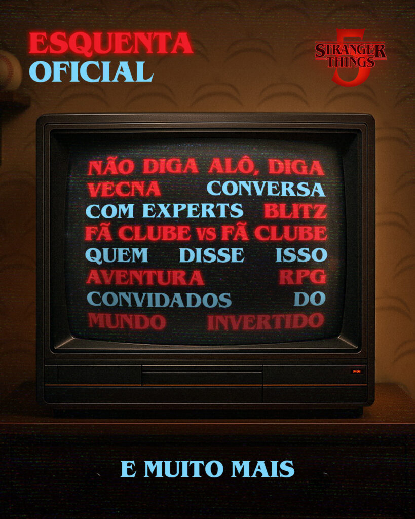 O aquecimento para a reta final de Stranger Things já tem data e hora. No dia 26 de novembro, às 17h, a Netflix Brasil transmitirá ao vivo no YouTube a live especial The Squawk Brasil, comandada por Maísa Silva e João Pedrosa. O programa será inspirado na Rádio Squawk, que aparece na quinta temporada, e promete cinco horas de conteúdo exclusivo para quem quer entrar no clima antes da estreia.