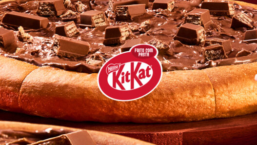 A collab Pizza Hut + KitKat já está disponível, por tempo limitado e em todas as lojas da rede espalhadas pelo país, com vendas também no aplicativo oficial da marca e nos demais apps parceiros de delivery.